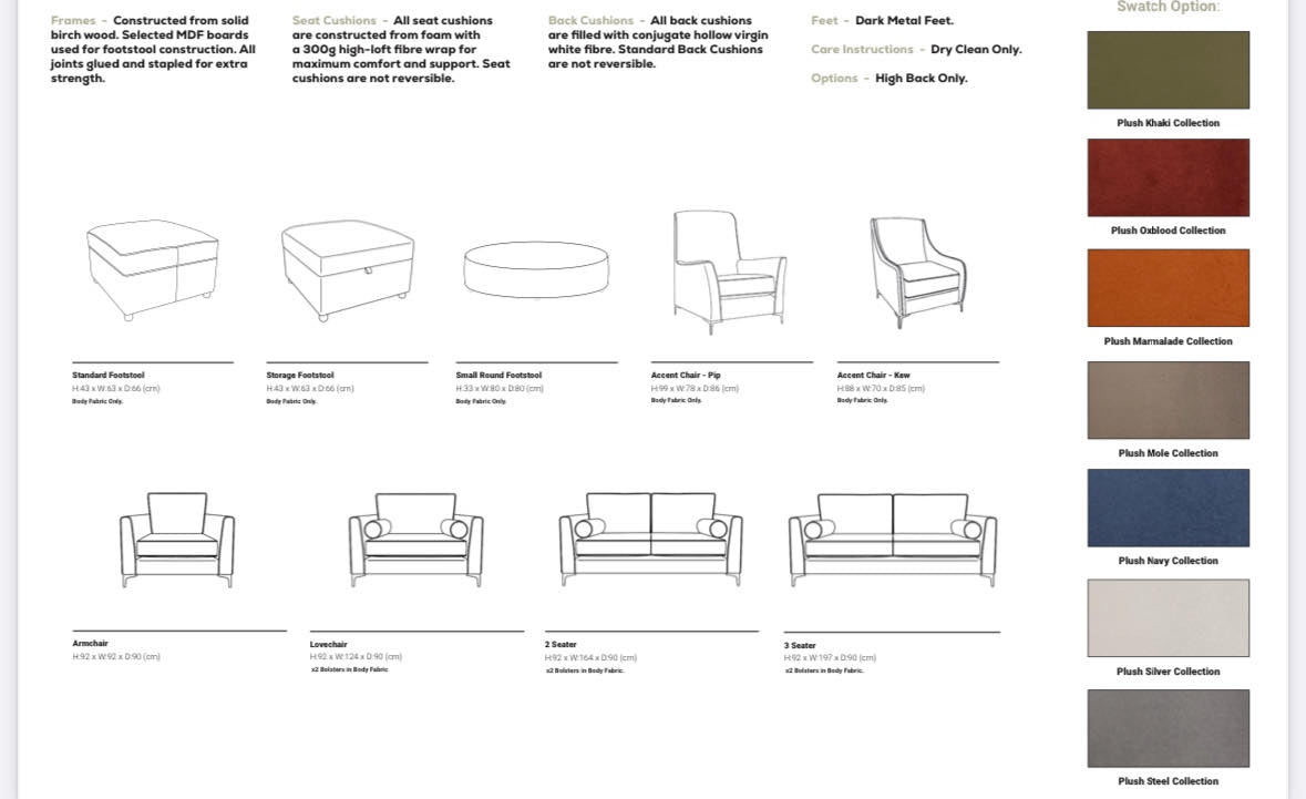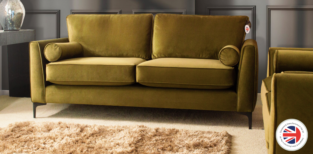 The Soho Sofa Range: Expertly crafted in the UK, this collection features plush fabric upholstery & matching bolster cushions. With gun metal brushed metal feet and a laminated birch wood frame for superior durability. Reflex foam cushions and backed by a 10-year guarantee, the Soho Sofa Range offers luxurious comfort and long-lasting quality for your home.