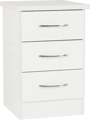White Gloss 3-Drawer Bedside Table Dimensions: W 40cm x D 40cm x H 61cm